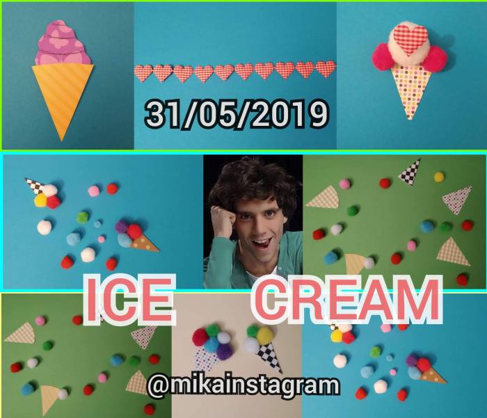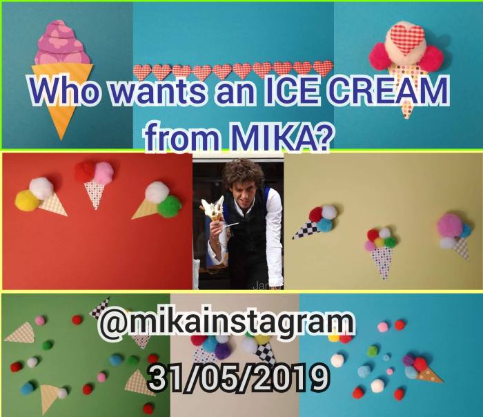 Mika promuje swoją nową piosenkę w stacjach radiowych Włoch i Francji. Dziś wieczorem był gościem w Le Drive RTL2, gdzie od godziny 18:00 rozmawiał i śpiewał na żywo. Zaśpiewał nie tylko „Ice Cream”, ale również „Underwater” i piosenkę Boba Dylana „Make You Feel My Love”. Tę piosenkę wybrał również dla Whitney do programu The Voice 1 czerwca 2019.