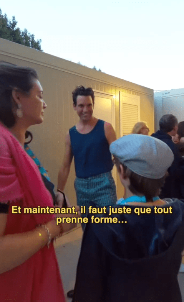 Filmik zaczyna się od „histerycznych” reakcji publiczności. Ze względu na wiejący Mistral zestawy głośników, które powinny być podwieszone wysoko ponad sceną (co widać na moim filmie ze zwiedzania teatru), zostały umieszczone bezpośrednio na scenie. Dlatego publiczność siedząca po obu stronach najwyższych rzędów nie słyszała wszystkiego. I co jakiś czas pozwalali sobie na reakcje, które zazwyczaj nie przystoją na koncertach symfonicznych. Ale to był koncert Miki! Biedny Mika starał się grzecznie wybrnąć z sytuacji i najpierw poprosił inżynierów dźwięku o podgłośnienie. Ale to nie wiele dało i słuchacze nadaj wołali „nic nie słychać”!!!! Mika powiedział: „absolutnie was rozumiem, na waszym miejscu robiłbym to samo”. A w pewnej chwili nawet powiedział: „obiecuję tutaj wrócić i zagrać jeszcze raz, a was wszystkich zaprosić do pierwszych rzędów”.
