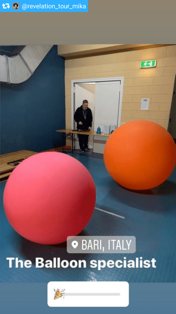 Revelation_tour_mika zamieścił na Instagramie fotografię pana, który przygotowuje te wszystkie balony. Skąd oni biorą takie zdjęcia?????!!!!! Dzięki 🙂